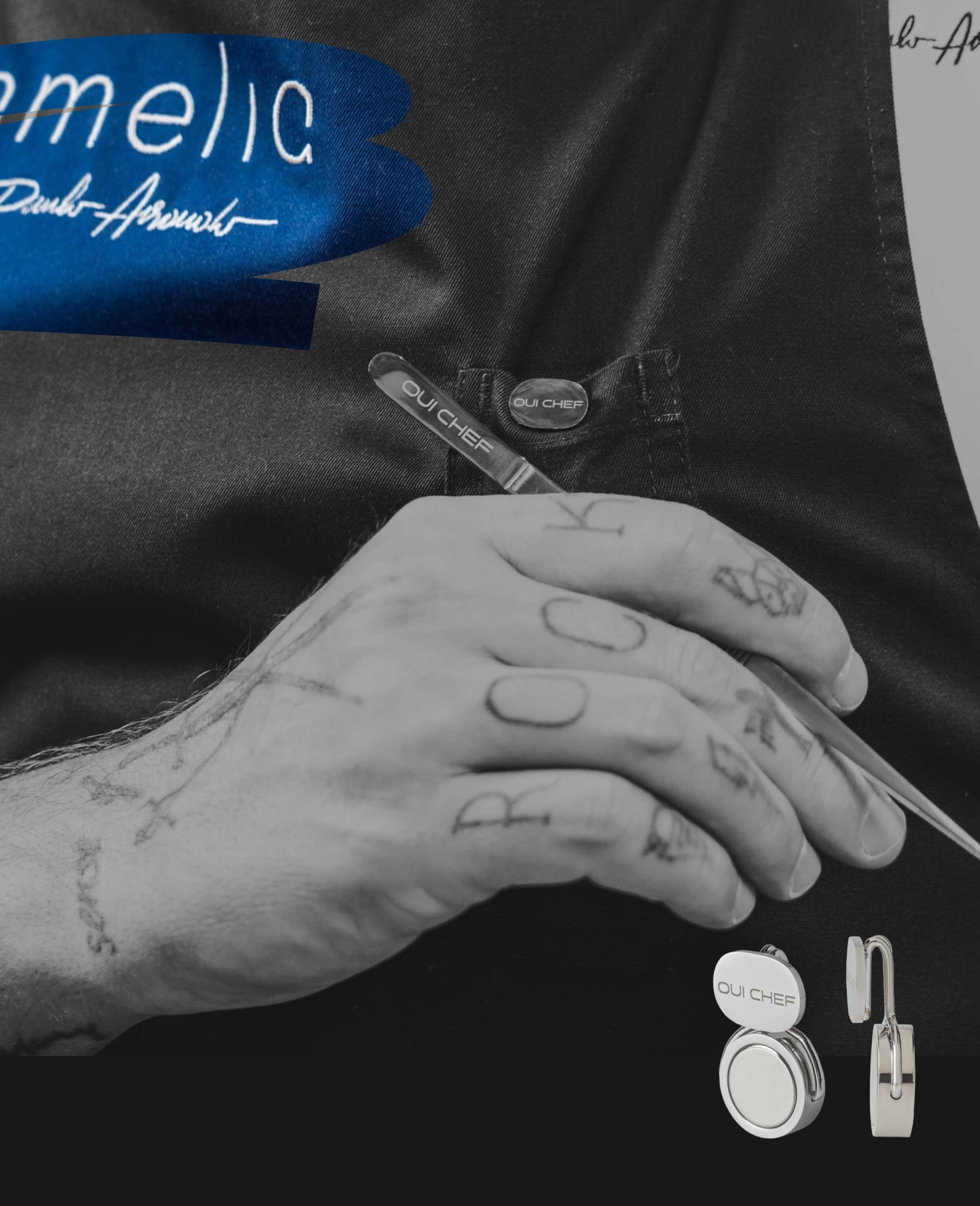 Some of the best restaurants around the globe gift tools from the Oui Chef range to their team. We offer a variety of different colours and styles depending on your requirements. And, of course, all pieces can be personalised with your logo and/or names or initials. We also work with select brands and stores on collaborations for promotion and retail.
